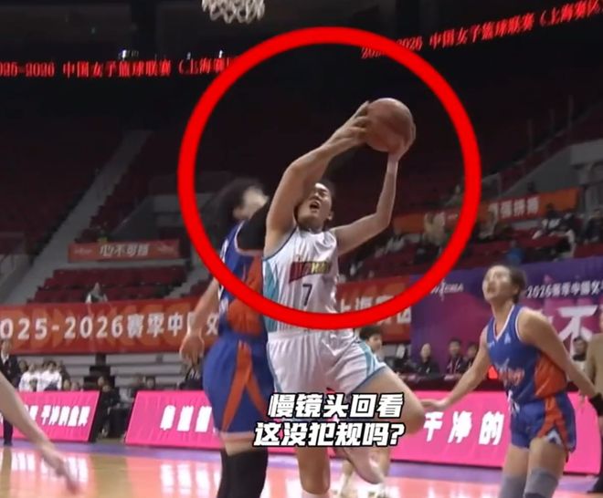 先是北京女篮队员潘臻琦上篮被犯规,但裁判没有任何表示,慢镜头回放,潘臻琦上篮被对手打手了。